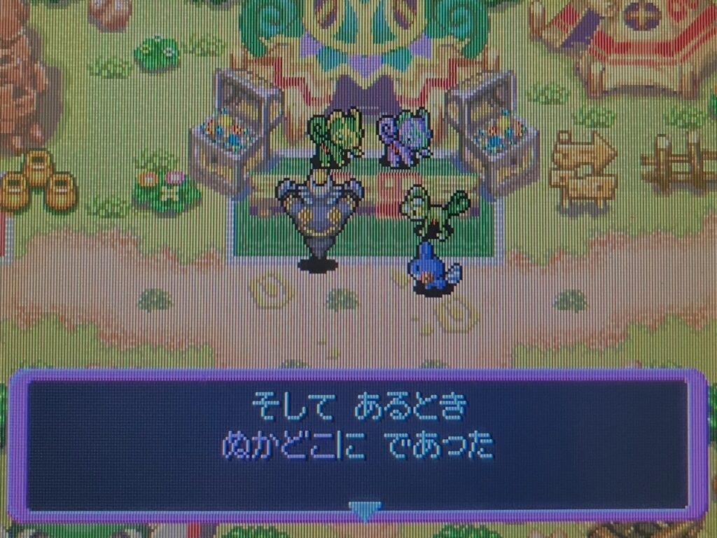 主人公たちがユクシーにかかわった後盗難事件が発生したので、プクリンのギルドが疑われています。ポリタンクくんはそのことで悩んでいる様子でした。主人公の言葉を簡単に信じちゃう相棒くん、純粋でかわいいですよね。ここで嘘ついたら大曇らせが発生するんだろうなと思いつつ激励しました。